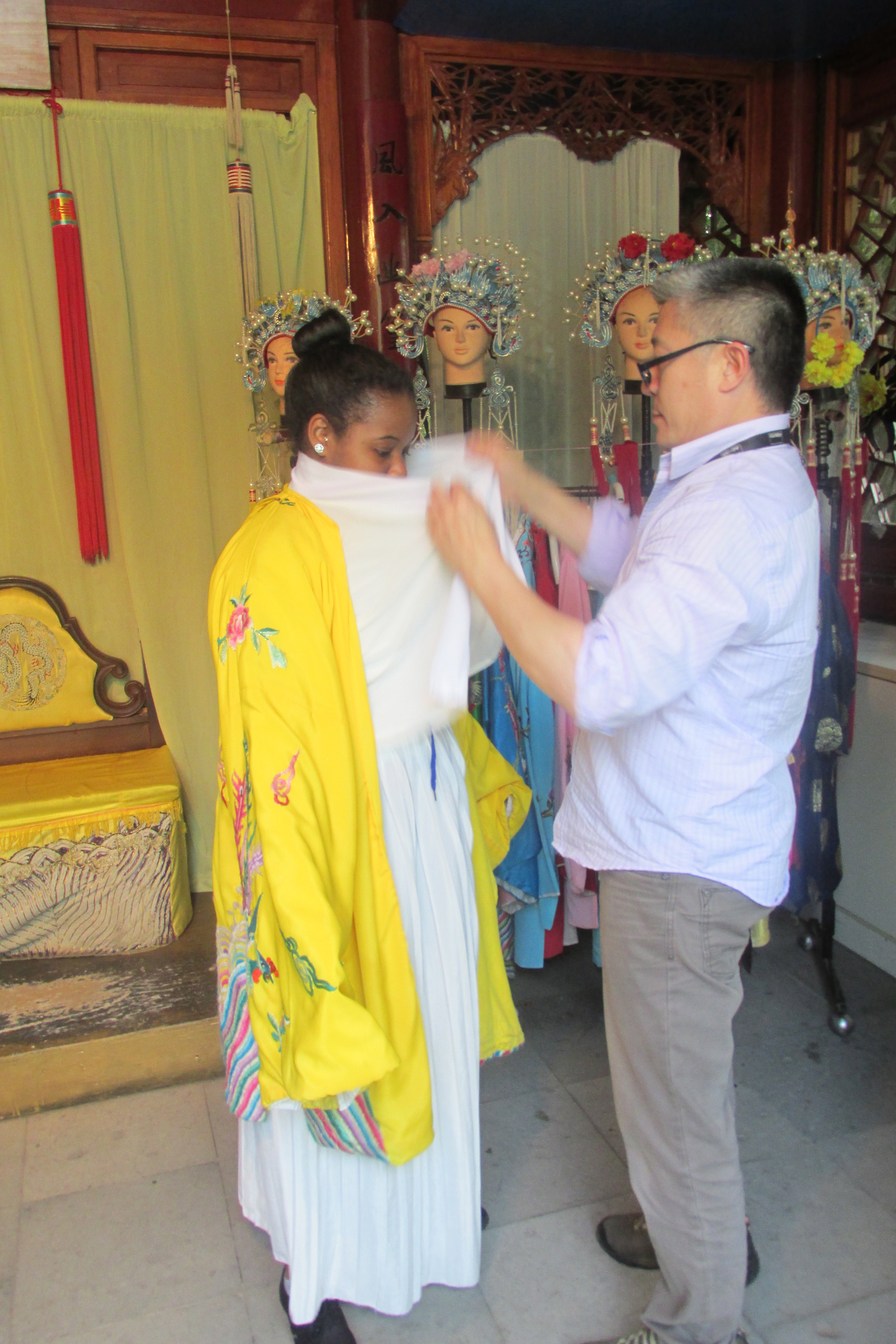 Small children dressed in traditional Chinese robes wandered by. Curious, I asked them why they were so done up and they replied they were playing royal dress up. I nearly tripped while I sprinted in the direction they pointed towards. Royal dress up?! I finally get to dress up as the princess I’ve always known I was!